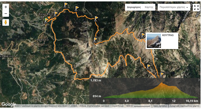 είναι 1 ώρα. Από την κορυφή κατεβαίνουμε την απότομη και σαθρή νοτιοανατολική
